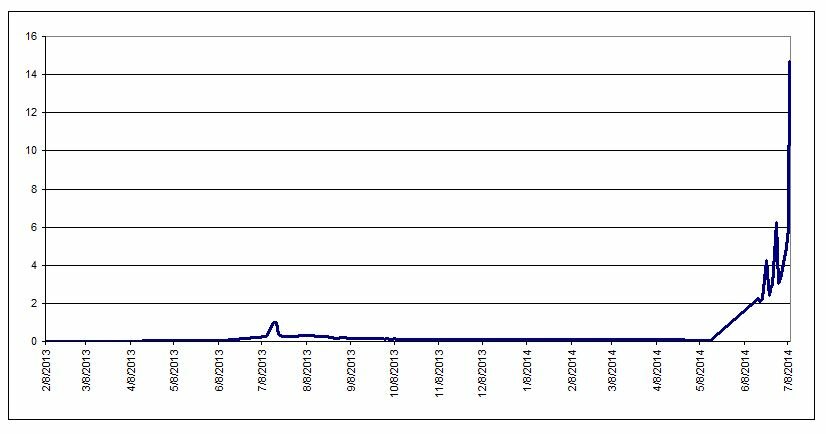 Update 7/11/2014: Trading has been suspended by the SEC. It is unlikely to resume. There are firms now holding around $5 billion of worthless stock in their portfolios. Those portfolios represent the sweat and hard work, money earned by real people that cannot be recovered. Let’s just hope that most of that $5 billion was instead owned by the idiots blowing up the current stock market bubble.