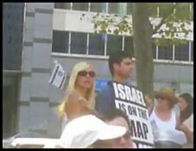 It turned out to be a rally in support of Israeli actions in Lebanon. I stayed for about an hour after getting a small Israeli flag and took these pictures using my Motorola e815.
