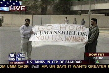 Welcome back to civilization guysIs it too early to celebrate? Maybe but let's party anyway! And while we do so, let's take a moment to look at the winners and losers of this conflict. Party on dudes!!! Winners:The Iraqi peoples - Shi'a, Kurds and yes even Sunnis. While we at The Razor believe that the breakup of Iraq is ultimately in the best interest of these peoples, now is not the time to do it. Instead the rebuilding of Iraq including the reconstruction of the emotional lives of those who have suffered under the Baathist regime should come first. Nevertheless the mechanism for breakup should be built into the system: perhaps a federation of three states along with a referendum option. The Iranian people - The youth of Iran have pretty much learned that America isn't the enemy. Now perhaps the other age groups will too. Donald Rumsfeld - In the wilderness since the Ford administration, the war has proven once and for all that you are truly a visionary and the finest Secretary of Defense seen in generations. Condoleeza Rice - Out kissingered Kissinger, who'd have thought that this little waif of a woman would have the mind of Talleyrand and the teeth of a shark. President George Bush - your enemies continue to underestimate you, but at their peril. While you may not be the sharpest knife in the drawer, you are much more intelligent than your adversaries. Better yet, you have the ability to surround yourself with men and women who are smarter than you are - a true leader. Now PLEASE FOCUS ON THE ECONOMY, OKAY? Tony Blair - The British don't realize what they have. Care to visit Westminster College and accurately predict the future? Losers:The United Nations - Chirac pressed the self-destruct button the moment he stated that France would veto any resolution that authorized force. Add to this the fact that American demands for Libya to be prevented from chairing the UN Human Rights Commission were ignored and the whole institution is shown for what it is: an anti-American, anti-Israeli debating society. Sorry, we can get one of those at Princeton for a fraction of the cost. Syria - Bashir Assad had the chance to show that he wasn't just some spoiled demogogue's bratty spawn when he took power after Haffez Assad died. Unfortunately, his behavior in the years since has shown that he's worse than his father. The Old Man at least entertained the idea of peace with Israel - apparently wanting to leave a legacy behind that had something to it besides torturing and killing Arabs and Palestinians. Bashir seems intent on going the Kim jong-il route by drawing a big fat bull's eye on his head and daring America to shoot it. Saddam's Useful Idiots (Cheryl Crow, Martin Sheen, Susan Sarandon, Michael Moore, etc) - Will you watch the West Wing now? Listen to Cheryl Crow's annoyingly vacuous songs? Bear Michael Moore's uninspired rants? I didn't think so. This group of people has proven that their knowledge of foreign policy and the world around them is shallower than their pathetic Hollywood lives. While they aren't important enough to have done serious damage to the coalition effort to oust Saddam, their comments and behavior did lend comfort to the enemy of both the American military and the Iraqi peoples. We won't wait for the apologies, we'll do something better: not buy the next Dixie Chick's release. Amnesty International, Human Rights Watch, other NGO's that pandered to their anti-American membership instead of standing up for their principles - Some of us at The Razor have supported these organizations in the past, but no longer. We suggest that they follow our recommendations for Medicine Sans Frontier given here. And if the Taliban can't cough up dough, there are still Baathists in Syria, corrupt ayatollahs in Iran, and nutcases in North Korea who can fund you. The Left - Here you had a war against an enemy that everyone hated and yet you managed to blow it. Your naive philosophies have blinded you to the reality that yes, things aren't always black and white - but sometimes they are. Saddam was evil by anyone's estimation except possibly in the view of his spawn - Qusay and Oday. Yet you blinded yourselves to this reality and let down the very people you claim to champion. People dropped in woodchippers. Children tortured in front of their parents. Rape rooms. Children's prisons. What the hell were you thinking? Think you'll get away with it? Think again (photo thanks to ColdFury):